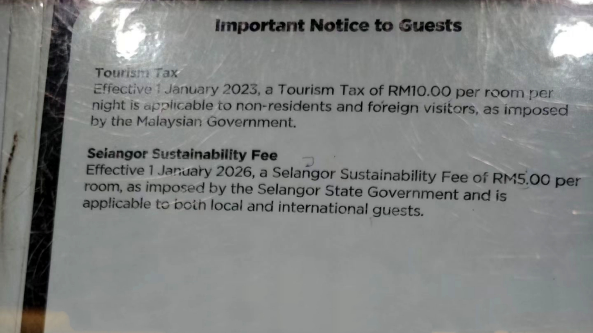 Starting January 1, 2026, the state of Selangor, Malaysia, will impose an environmental fee (also referred to as the “sustainability fee”) on hotels.